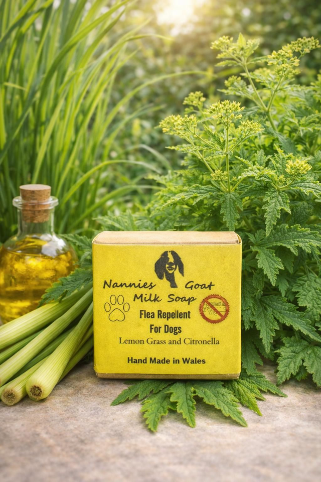 A natural dog soap made with lemongrass and citronella essential oils, traditionally known for helping to repel fleas while gently cleansing your dog’s coat.