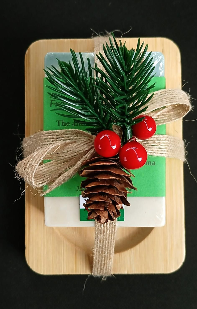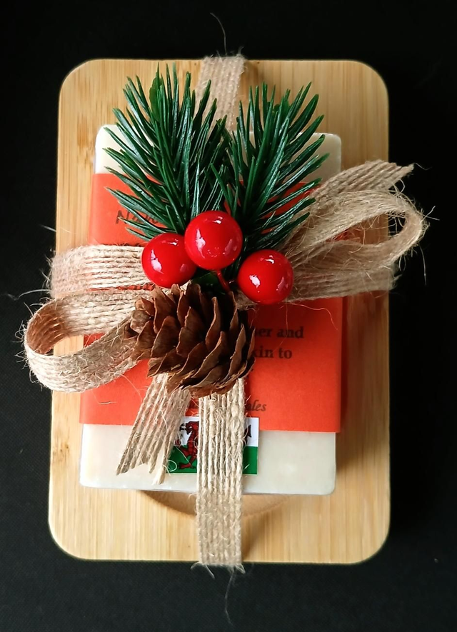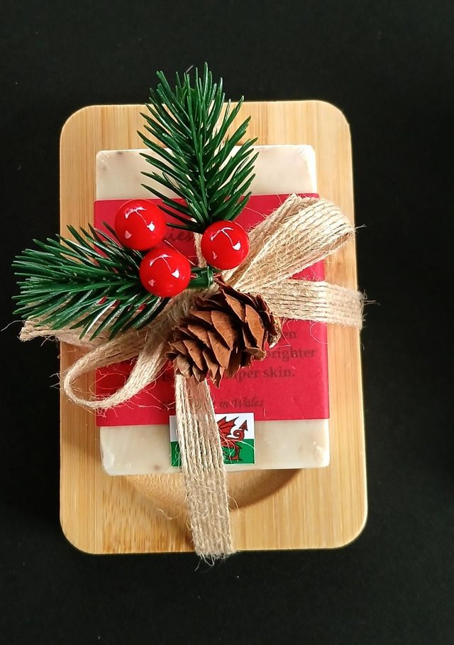 Our goat milk soap, nestled on a smooth wooden dish and adorned with a touch of festive greenery, brings together the best of nature and tradition. Gentle on the skin and made with care, it’s a thoughtful gift of pure, natural goodness.