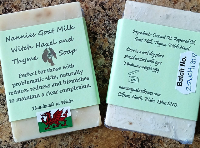 Coconut oil, Rapeseed oil, Goat Milk, Thyme and Witch Hazel Essential Oil.